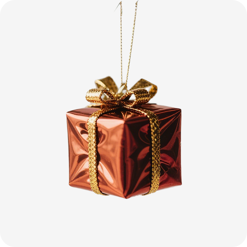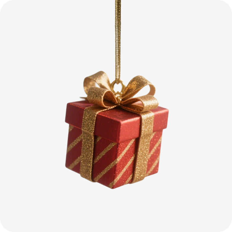 Tiny yet magical, this Mini Gift Box Ornament brings the excitement of unwrapping presents to your holiday décor! Adorned with shimmering patterns and a dainty bow, it dangles gracefully from branches or garlands. Each piece holds the charm of a hidden surprise, inviting guests to look closer and imagine what might be inside. Whether hung on a tree, nestled in a wreath, or used as a decorative accent on a gift stack, this ornament captures the joyful anticipation that defines the season. A sparkling little secret waiting to be discovered, it adds a touch of whimsy and wonder to your celebrations.